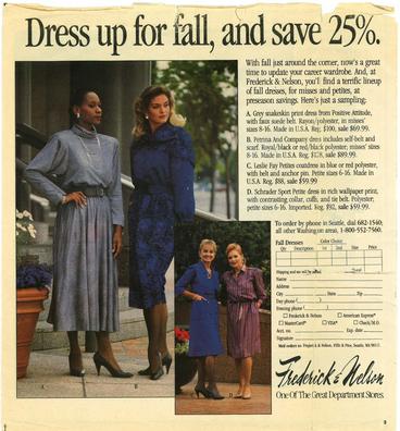Throughout her modeling career, Deirdre D. Parker was represented by a well-regarded local Seattle modeling agency enabling her to land prestigious professional modeling gigs, including bookings with the Pacific Northwest’s iconic, premier, upscale & now-defunct, Frederick & Nelson’s Department Store (a division of Marshall Field's Depart Stores), British Airways Airlines, and Michelob Beer, among others.